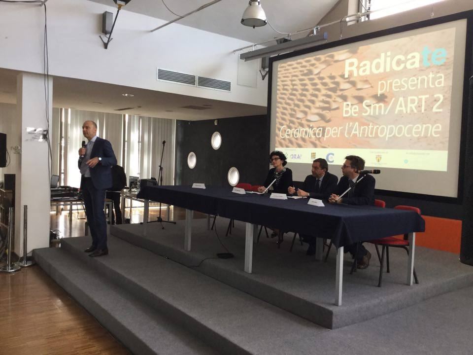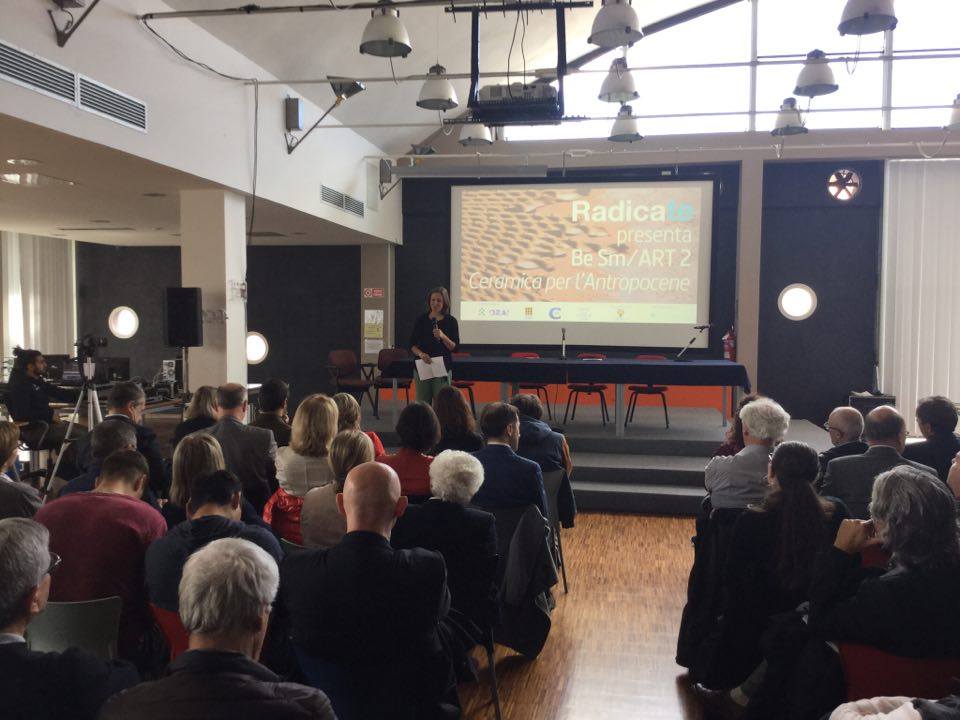 "Tre centri di ricerca uniti per un obiettivo finale, il dipartimento di Ingegneria del Campus, i ceramisti di Albisola e la collaborazione del FabLab di Torino hanno consentito grazie alla stampa 3D a braccio robotico di realizzare pezzi unici in ceramica.", queste le parole di Francesca Perona. Cristina Pisapietra, direttrice artistica dell'associazione Radicate, ha esposto il progetto tramite un video di spiegazione e ha introdotto con varie domande l'ingegnere Roberto Procopio, Andrea Graziano di Fab Lab, il ceramista Marco Tortarolo e Cecilia Chilosi. Questo pomeriggio dalle 14.30 nel Museo della Ceramica di Savona in Piazza Chabrol 1 verrà esposta l'opera al pubblico.