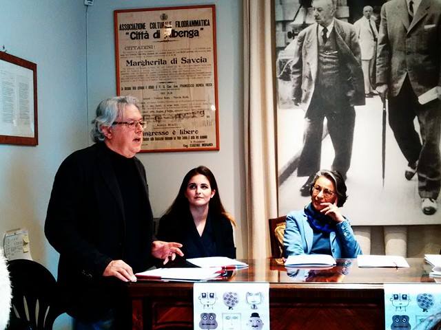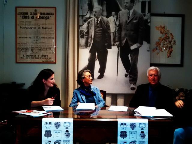 Al tavolo in questa elegante e raffinata sede, da sinistra: Stefano Delfino (direttore artistico del festival), Maddalena Pizzonia (consigliere delegato al festival del comune di Borgio Verezzi), Marina Noberasco (gruppo Noberasco), Renato Dacquino (sindaco di Borgio Verezzi) e Giorgio Caprile, attore e regista teatrale.