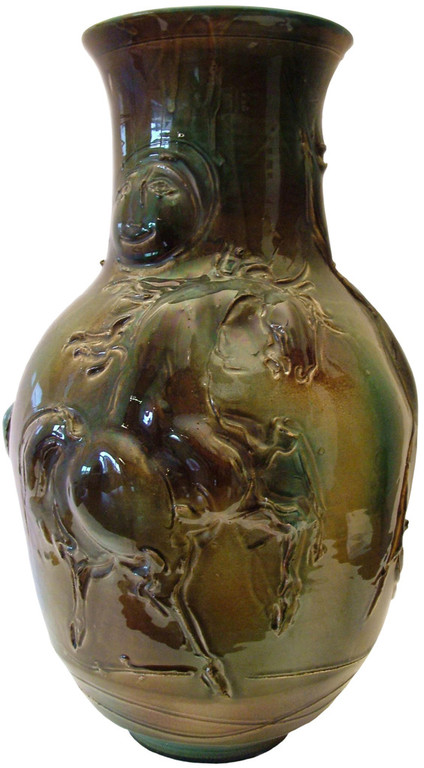 Eliseo Salino (Albissola Marina, 1919 – 1999) eredita dal padre, che aveva studiato all’Accademia Albertina di Torino, la passione per l’arte. Agli inizi degli anni Trenta lavora presso la fabbrica di Tullio d’Albisola, dove si perfeziona ed ha la possibilità di incontrare molti artisti. In seguito compie un viaggio in motocicletta insieme all’amico Torido Mazzotti e visita le maggiori manifatture ceramiche del Nord Italia. Nel 1936 si iscrive all’Istituto Interuniversitario di Faenza dove vince una borsa di studio, che gli permetterà di frequentare più tardi la prestigiosa Accademia di Brera a Milano. Nel 1939 si trasferisce in Toscana. Nel 1947 si stabilisce definitivamente nella cittadina ligure. Partecipa a varie mostre riscuotendo successo ed aggiudicandosi diversi riconoscimenti: viene premiato alla IV Triennale di Milano ed al III Concorso di Faenza nel 1941. Nel 1958, insieme a Mario Pastorino e Giovanni Poggi, fonda, diventandone direttore artistico, le Ceramiche San Giorgio. Salino muore ad Albisola nell’inverno del 1999 all’età di ottant’anni.