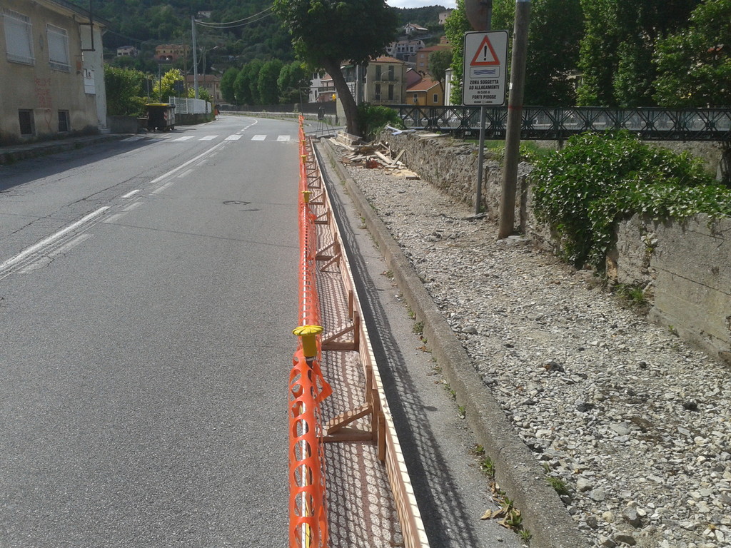 I lavori sono stati appaltati all’impresa GIUSTINIANA S.R.L. di Gavi (AL). La scelta progettuale ha previsto un intervento esterno, con struttura metallica, a sbalzo sul muro di sostegno esistente della SP n. 29 e la continuazione con masselli autobloccanti su banchina esistente a tergo della barriera stradale sino alla corrispondenza del tratto di marciapiede già a suo tempo realizzato in Via Longagnini. È volontà dell’Amministrazione inoltre, la realizzazione del marciapiedi in Via Torcello.