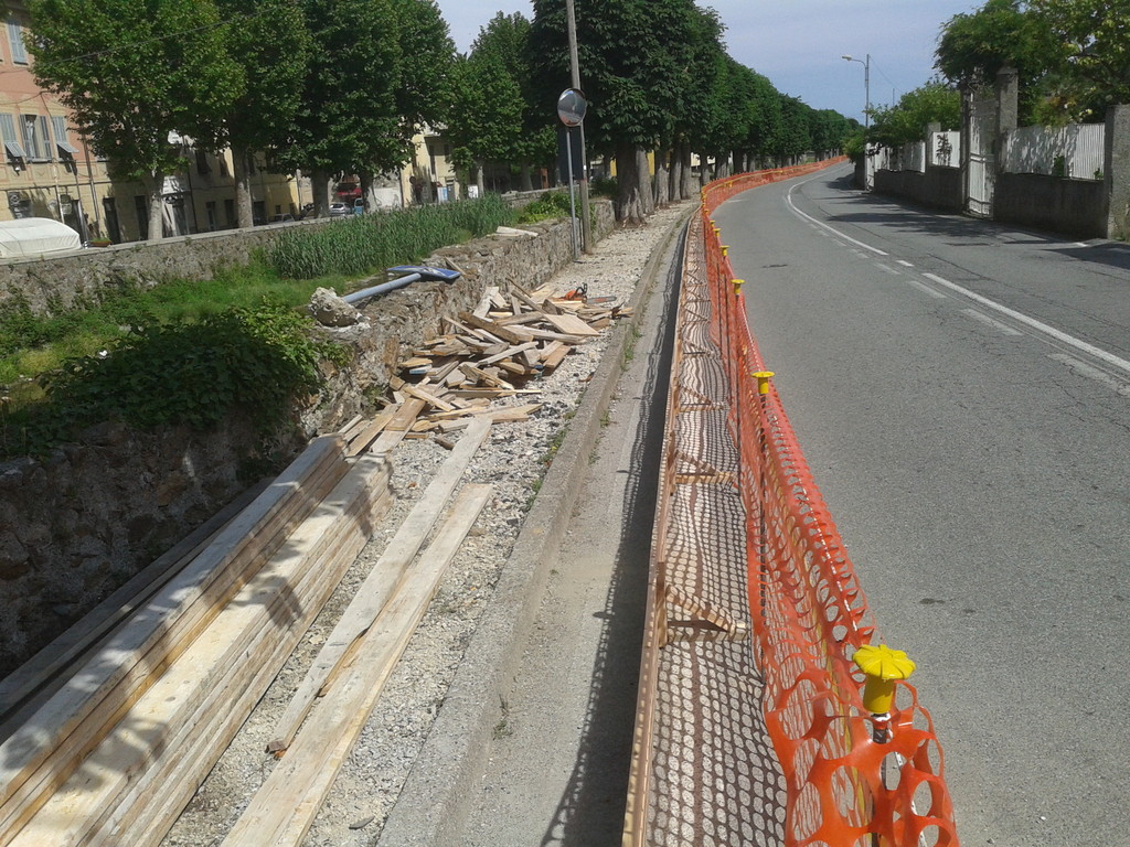 Il rifacimento del tratto era assolutamente necessario e stante l'attuale impercorribilità non è stato possibile attendere le probabili modifiche alla viabilità conseguenti al completamento dell'allargamento dell'alveo del torrente, progetto per il quale l'Amministrazione sta ricercando le necessarie risorse. Per la realizzazione degli interventi non si procederà all’abbattimento di alcun albero, ma, in virtù di un restringimento della carreggiata, verrà creata un'area di “protezione” intorno alle alberature ad oggi “contornate” dall'asfalto, al fine di aereare maggiormente gli apparati radicali e limitare il danneggiamento delle superfici viarie. In considerazione della tipologia di intervento, la superfice pedonale verrà realizzata in calcestruzzo con finitura industriale.