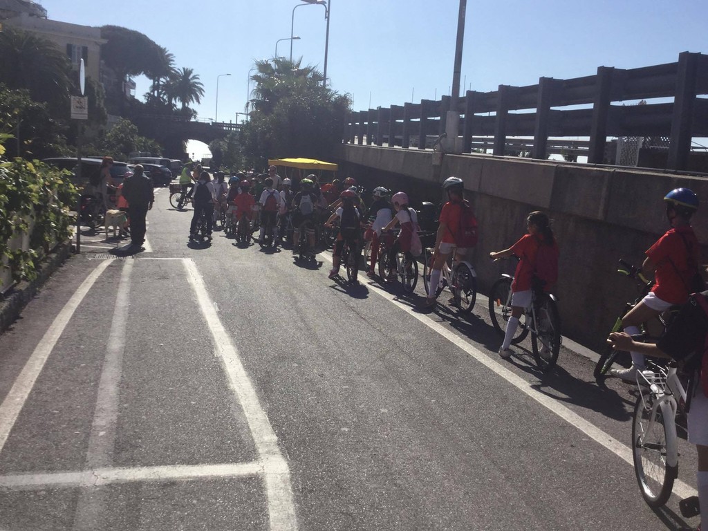 Il Comandante dei Vigili Urbani Roberto Fazio, giá in passato aveva collaborato insieme con i docenti delle scuole per l'insegnamento delle nozioni di educazione stradale, quest'oggi ha spiegato tutti i dispositivi d'obbligo della bicicletta con le regole da seguire per strada, poi piazzatosi in testa al gruppo ha accompagnato i bambini, muniti ognuno di una bicicletta, verso il Lungomare Europa che si articola dalla Mola al confine con Cogoleto.