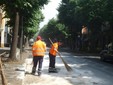 Incidente in viale Pontelungo ad Albenga dove una spazzatrice che era all'opera per un guasto ha perso carburante lungo la careggiata.