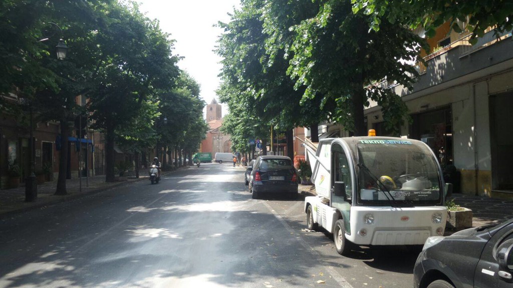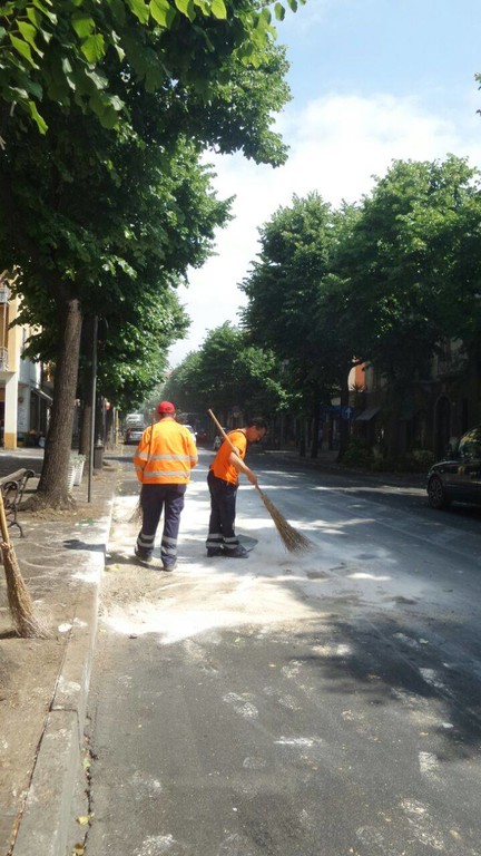Pare che una spazzatrice abbia perso carburante lungo la strada