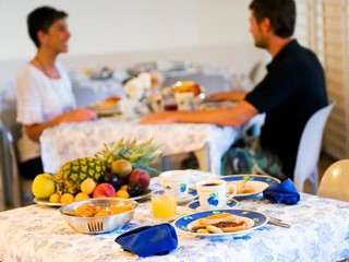 Per quanto riguarda la cucina, nella sala ristorante climatizzata, viene data un'ampia scelta di menù con piatti di pesce e carne che vengono variati giornalmente, la sala colazione mette a disposizione un ricco buffet dove non possono mancare i dolci fatti in casa. Sono presenti menù personalizzati per chi ha problemi di intolleranza.