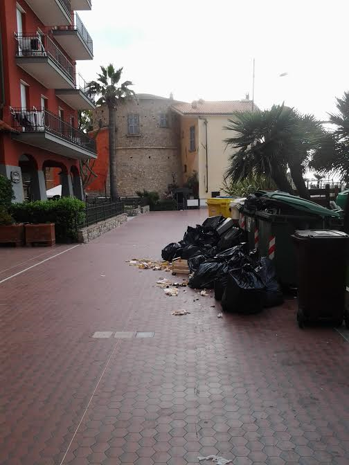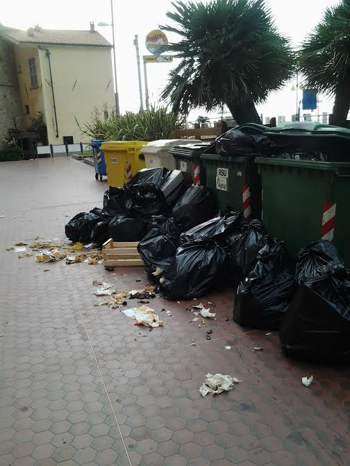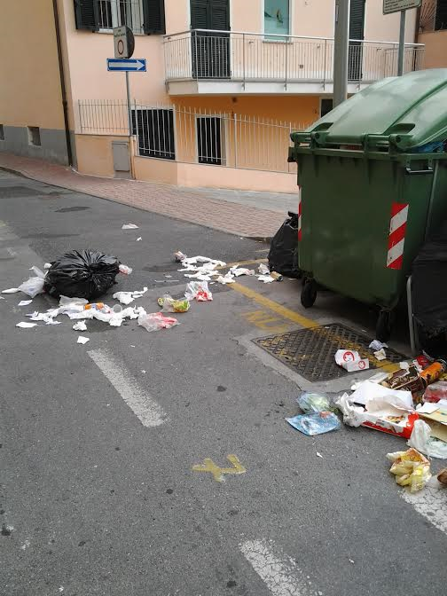 Andora, rifiuti per strada in pieno centro: così si presenta la città dopo il ponte del 2 giugno