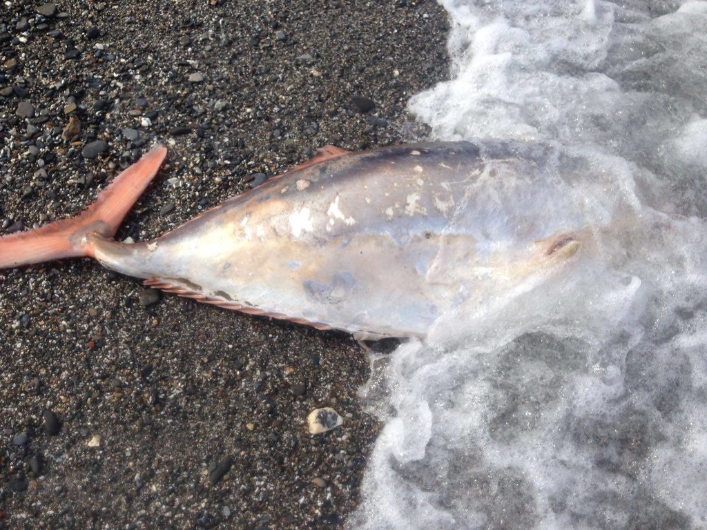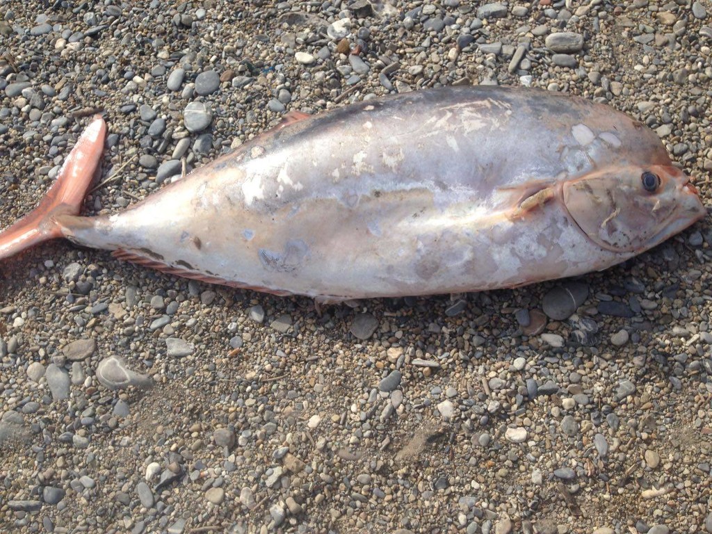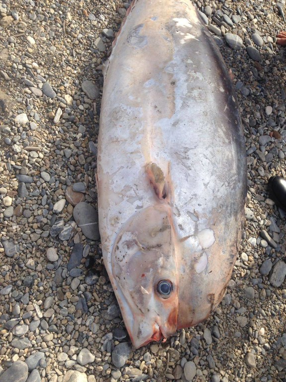 Sulla spiaggia nei pressi del monumento dei bambini ad Albenga è stato trovato un esemplare di pesce imperatore o luvaro (Luvarus imperialis) senza vita.