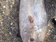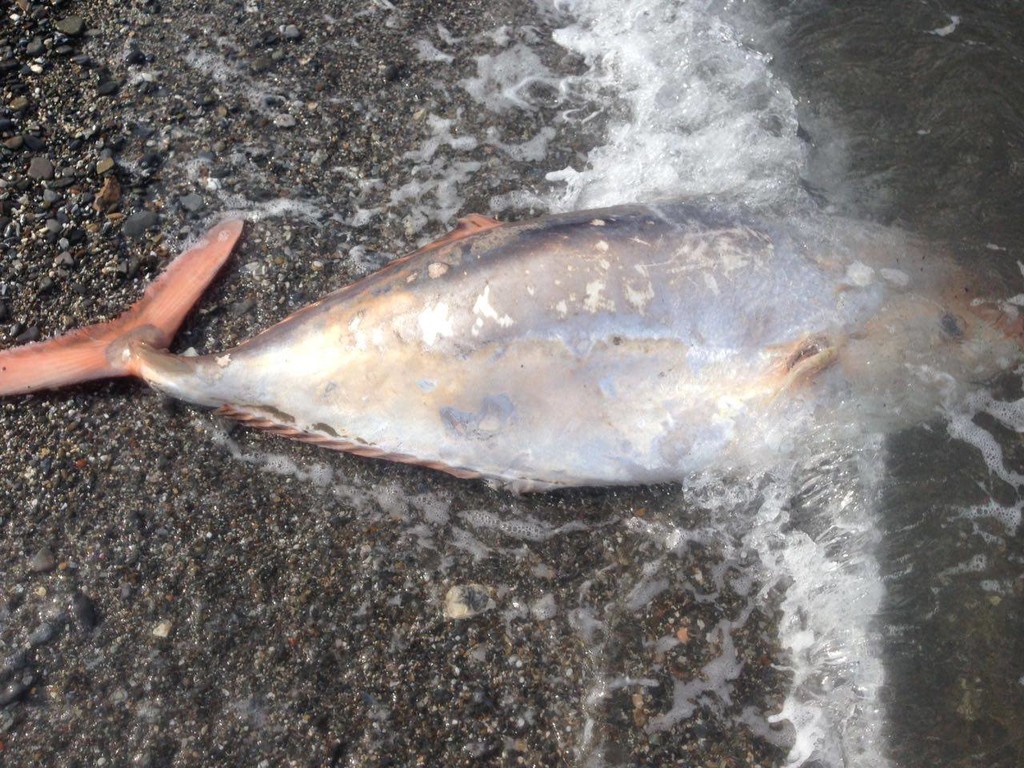 Lungo oltre 1 metro e mezzo e di oltre 70 kg la sua morte non si sa da cosa sia stata determinata ma un tale spiaggiamento pare essere piuttosto raro