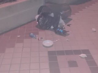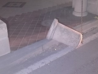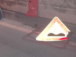 Panchine capovolte, dissuasori di traffico divelti, segnaletica stradale lanciata in mezzo alla strada, cestini dell'immondizia rovesciati