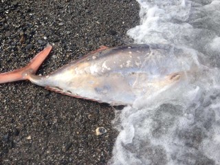 Lungo oltre 1 metro e mezzo e di oltre 70 kg la sua morte non si sa da cosa sia stata determinata ma un tale spiaggiamento pare essere piuttosto raro