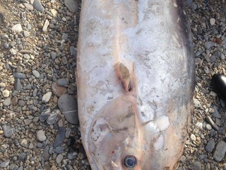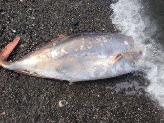 Sulla spiaggia nei pressi del monumento dei bambini ad Albenga è stato trovato un esemplare di pesce imperatore o luvaro (Luvarus imperialis) senza vita.