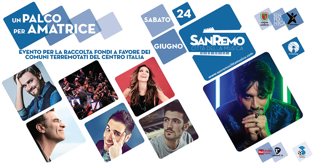 Una serata-evento per caratterizzare l’inizio della stagione estiva di Sanremo: “UN PALCO PER AMATRICE” sarà un grande concerto interamente dedicato alla raccolta fondi per i comuni del centro Italia colpiti dai recenti terremoti.