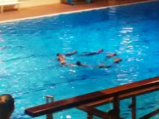 Le piccolissime, che hanno appena iniziato a familiarizzare con l’acqua, insieme all’istruttrice Samantha nella piscina di Finale, si cimentano con le Esordienti B che invece hanno appena affrontato le prime gare a Bogliasco a maggio, seguite da Rossella e Samantha, su due coreografie basate sui temi musicali di “Grease”.