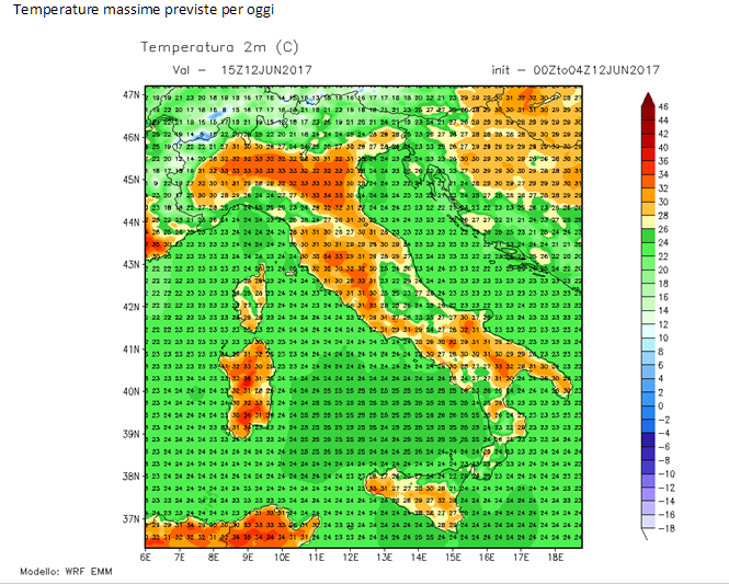 Avremo cielo in prevalenza sereno o poco nuvoloso , con possibilità di nuvolosità più estesa ma di scarso spessore al mattino a causa dell’elevata umidità presente in quota. Al pomeriggio possibilità di formazioni di nubi cumuliformi sui rilievi ma senza rovesci o con probabilità di eventi piovosi molto basse. Temperature stazionarie con massime intorno 30/34 °C in pianura (sulle coste liguri tra 24 e 28 °C), minime attorno 19/21 °C. Elevata sensazione di afa soprattutto nelle pianure più orientali. Venti assenti o deboli a regime di brezza di direzione variabile. Temporanei rinforzi al pomeriggio da direzione meridionale su Liguria e basso Piemonte.