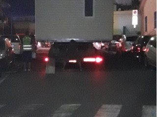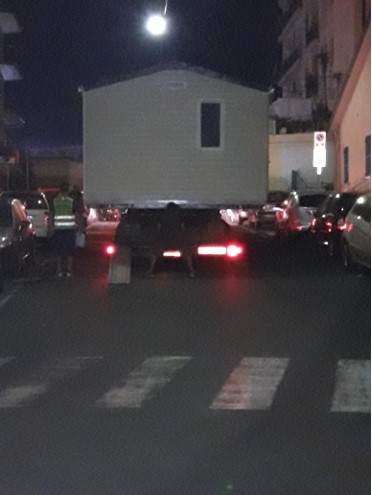 rotte di super lavoro per polizia municipale albenganese e operai della segnaletica a seguito di un trasporto eccezionale di quattro case prefabbricate dirette nella notte presso la struttura ricettiva il Camping dei Fiori di Albenga nei giorni scorsi .