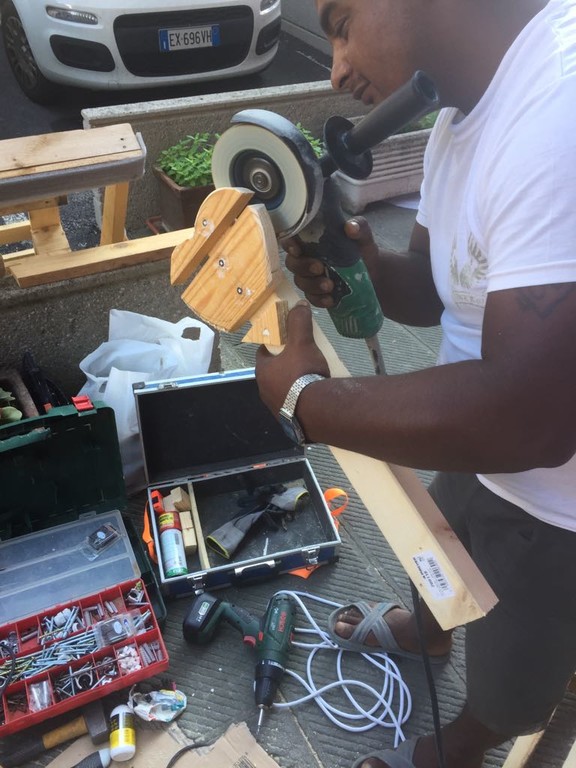 Italo Mazzucco, titolare di Italo’s Village (nonché una delle voci di BRG Radio, la web-radio della Filarmonica di Finalborgo), ci ha messo gli spazi: “Dai quartieri dove il sole del buon Dio non dà i suoi raggi, come diceva De André, si possono fare queste cose. Lo spazio non è mio, è di tutti, ma sono felice che i lavori avvengano sotto i portici del mio bar e, visto che ci troviamo proprio all’inizio del paese, sarei felice che uno di questi pianoforti restasse qui vicino, un po' come simbolo di vita e di animazione anche nelle periferie. Mi presto con il mio locale a dare tutto il supporto logistico necessario. Mi fa piacere assistere a questo cantiere che cresce giorno dopo giorno, e se qualche cliente si lamenta per il rumore sono sempre pronto a spiegare che si tratta di un bellissimo progetto per il bene della comunità e tutti sono disposti a capire e a sopportare qualche disagio. Un grande segnale da Antonio Bonomo e Lorenzo Vicino per ravvivare una città”.