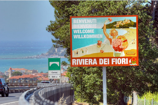 Dal 26 giugno, sull’Autostrada A10 in direzione Francia, prima dello svincolo di San Bartolomeo al mare, è stato posizionato un cartellone promozionale (v. foto allegata) che avvisa gli automobilisti dell’ingresso nel territorio della Riviera dei Fiori, con un messaggio di benvenuto in quattro lingue: italiano, francese, inglese e tedesco.