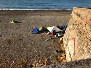 Tende, bivacchi e sacchi a pelo sul litorale, cartacce per terra e cestini gettacarta sovraccarichi