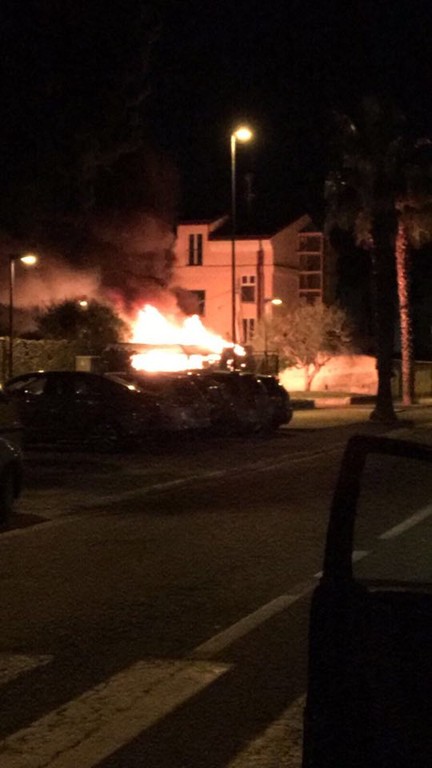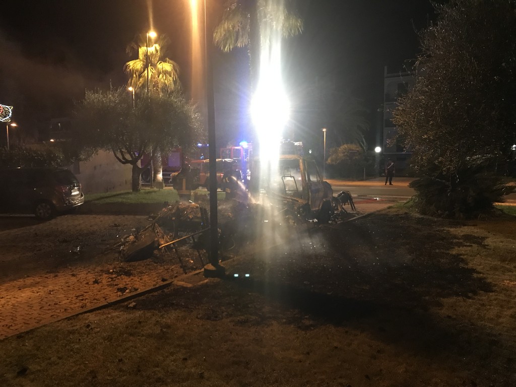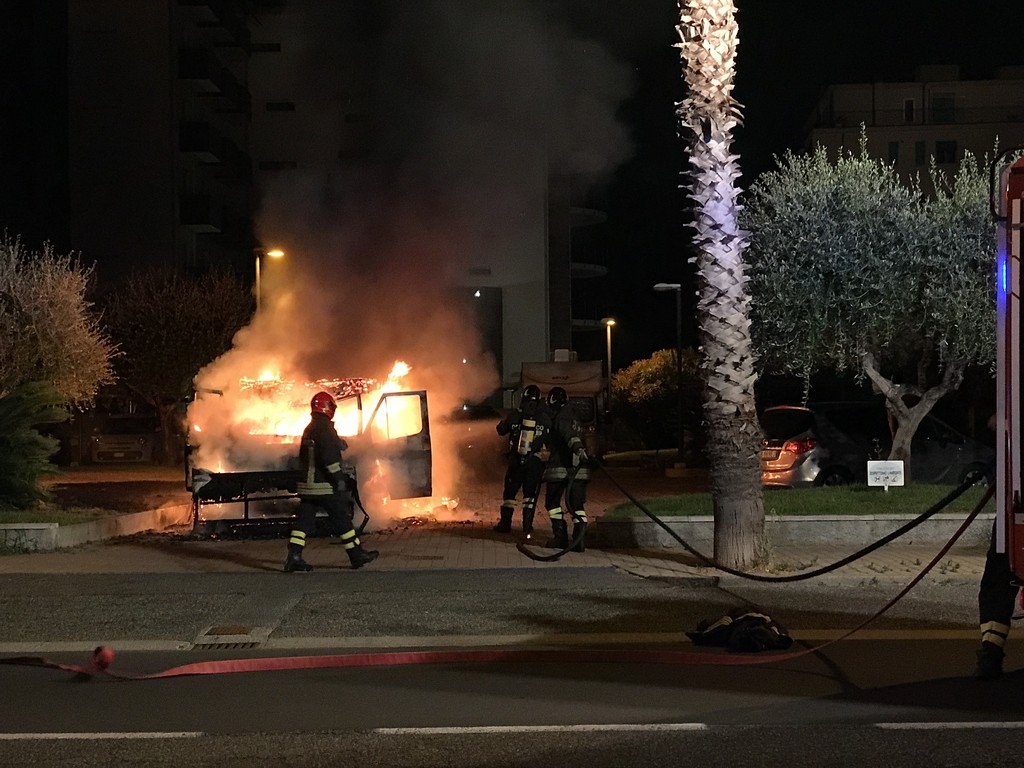Paura questa notte a Pietra Ligure. Un camper ha preso fuoco in viale della Repubblica, all'altezza del supermercato Basko.