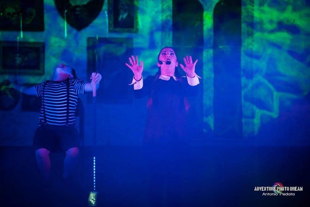 Uno spettacolo assolutamente esilarante, che non si ferma mai, totalmente immerso nel folle e grottesco delirio di Casa Addams. Come se i personaggi della Famiglia non fossero già abbastanza assurdi, la loro epopea è contornata da un caravanserraglio di avi di ogni epoca che definire stravaganti è poco. Gli Addams vivono in un loro mondo che, seppur completamente rovesciato, è assolutamente coerente nella sua follia.