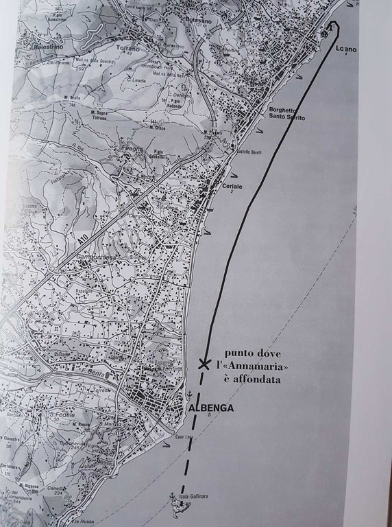 Nel pomeriggio del 16 luglio del 1947 la motobarca Annamaria stava trasportando 84 bambini, tutti maschi dai 4 agli 8 anni, in prevalenza milanesi orfani di guerra. I piccoli erano ospiti della colonia della solidarietà nazionale di Loano, ed erano diretti in gita all’isola Gallinara. Alle 18 il mare era calmo: la nave strapiena, che viaggiava a circa 60 metri dalla costa, urtò contro un ostacolo, iniziando a imbarcare acqua. L’Annamaria si inclinò pericolosamente, mentre i bambini cadevano in mare. Le vittime del disastro furono 48: 44 bimbi e 4 adulti. "Ad Albenga - scrisse allora Dino Buzzati inviato sul luogo della tragedia - si era concentrato tutto il dolore del mondo".