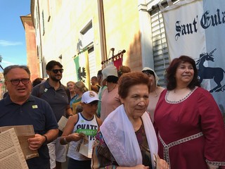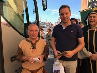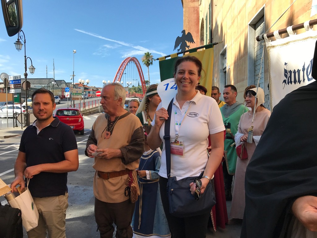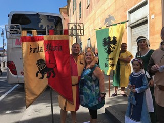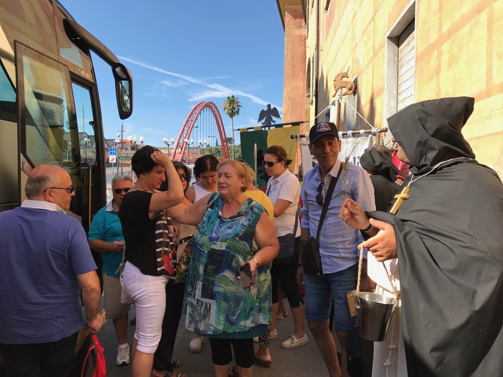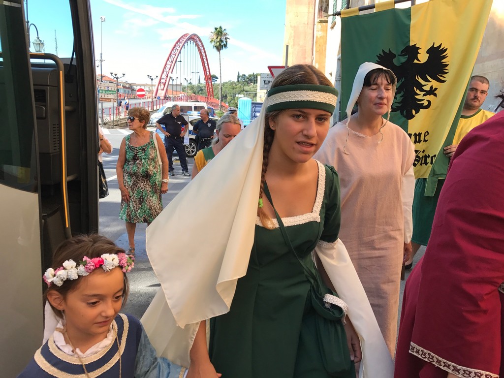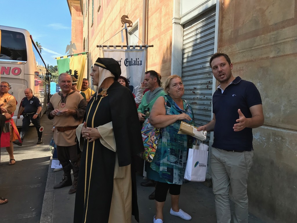 A meno 4 giorni al Palio Storico di Albenga, l’assessore al turismo Alberto Passino, la presidente dell’associazione Palio Storico Piera Olivieri e i rappresentanti e capitani dei 4 quartieri partecipanti al Palio, che immergerà la città nel medioevo dal 20 al 23 luglio, hanno inteso dare un benvenuto speciale ai crocieristi della Costa Crociere, giunti con bus questa mattina alle ore 10 e che come ogni weekend hanno scelto di visitare Albenga.