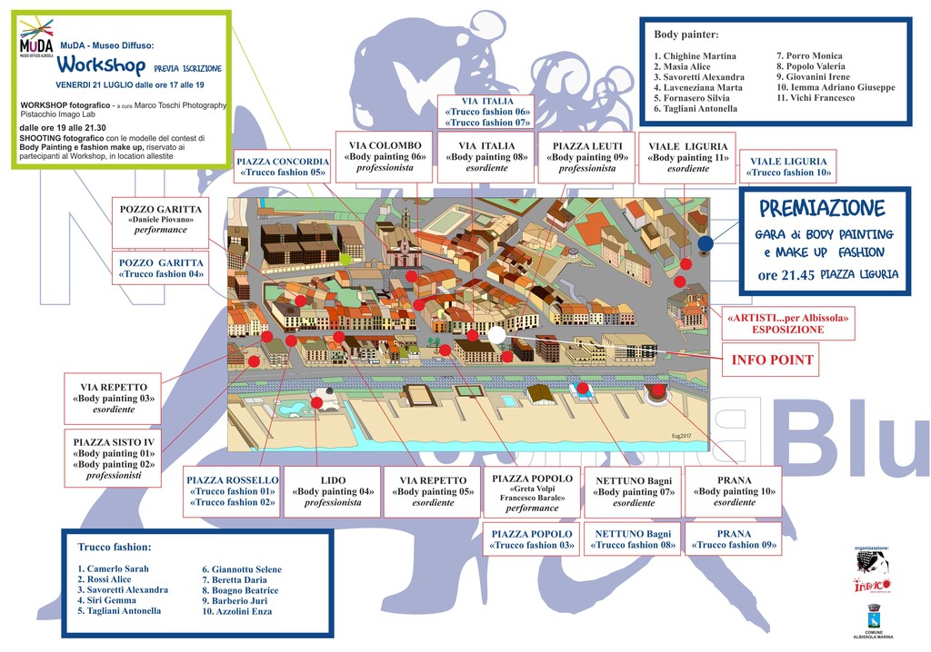 La serata sarà invece animata da intrattenimento musicale, performances, street food e, a partire dalle 21.45 in Piazza Liguria, sfilata con premiazione finale delle “statue umane” dipinte a 360° in bianco&blu.