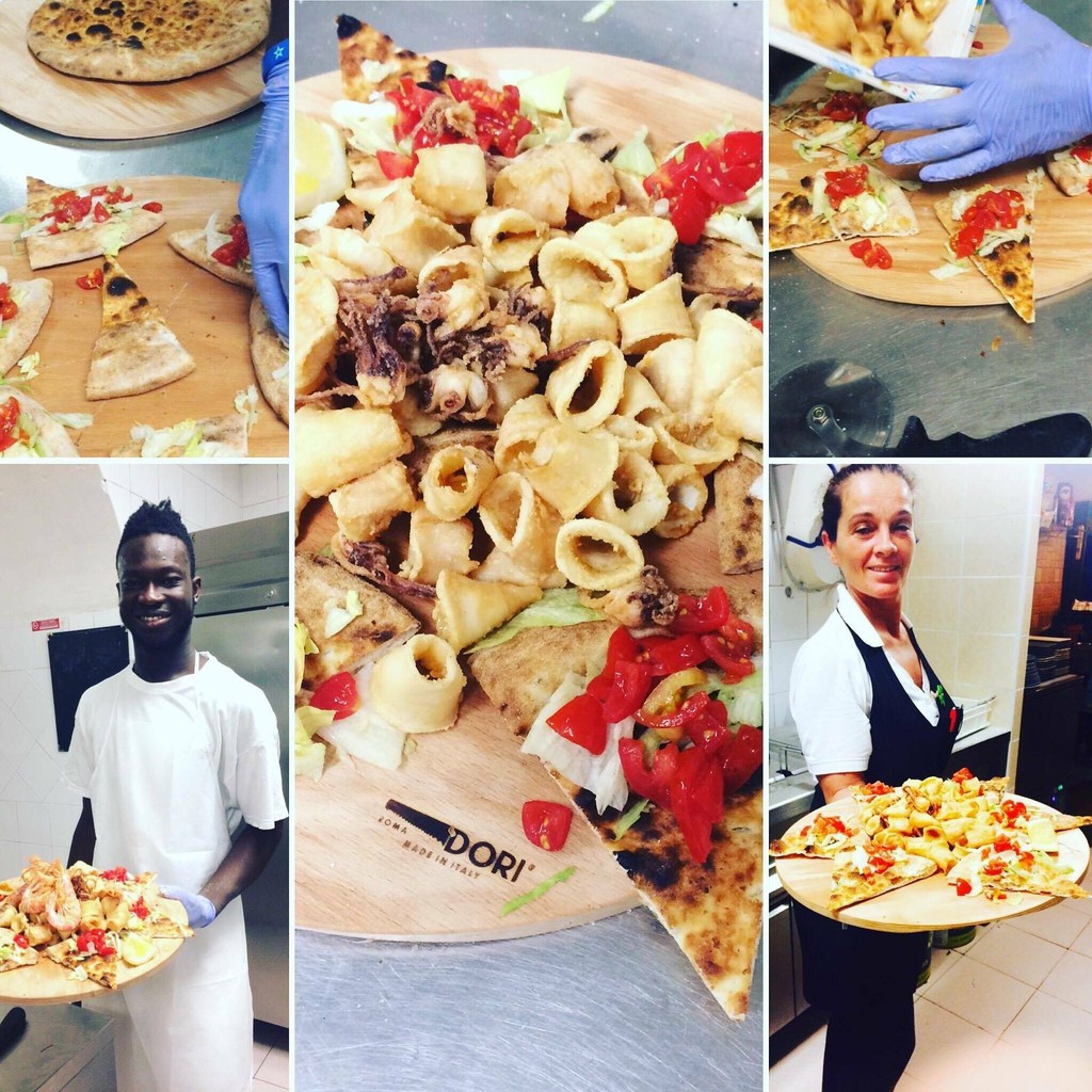 Il piatto più particolare del ristorante in quanto sopra una pizza/focaccia vengono stesi una grandissima quantità di totani e calamari oltre a una pioggia di pomodorini.