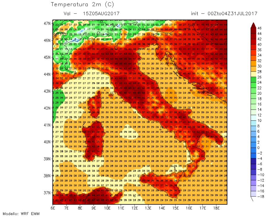 Le tendenze sono state confermate: ci attende forse la settimana più calda di questa estate. Un intenso anticiclone si è formato sul Mediterraneo centrale, portando con se aria di origine sahariana molto calda. Sono previste temperature che in molte località da nord a sud sfioreranno o supereranno i 40 °C. Al Nord-Ovest i valori saranno leggermente più bassi per via di alcuni passaggi nuvolosi e delle recenti piogge del weekend. Ma la sensazione di afa sarà molto elevata.