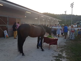 Durante la serata questa star che dal 202 quando si è ritirato vive in val da Vigone, non si è sottratto ai selfie di appassionati e curiosi facendo una passerella tra la gente che ancora lo considera “il cavallo”.
