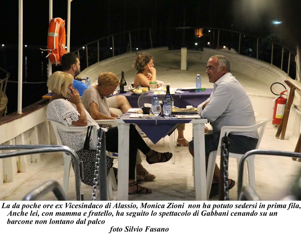 Presente all'evento anche l'ex vice sindaco Monica Zioni, ma - esautorata dall'esecutivo alassino - ha seguito il concerto non in prima fila, bensì cenando su un barcone non lontano dal palco.
