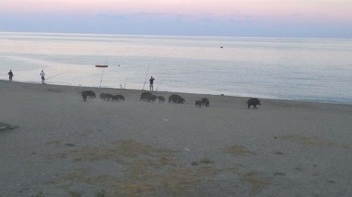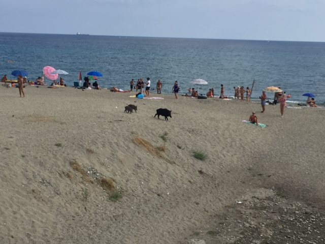 Savona, i cinghiali passeggiano vicino ai bagnanti