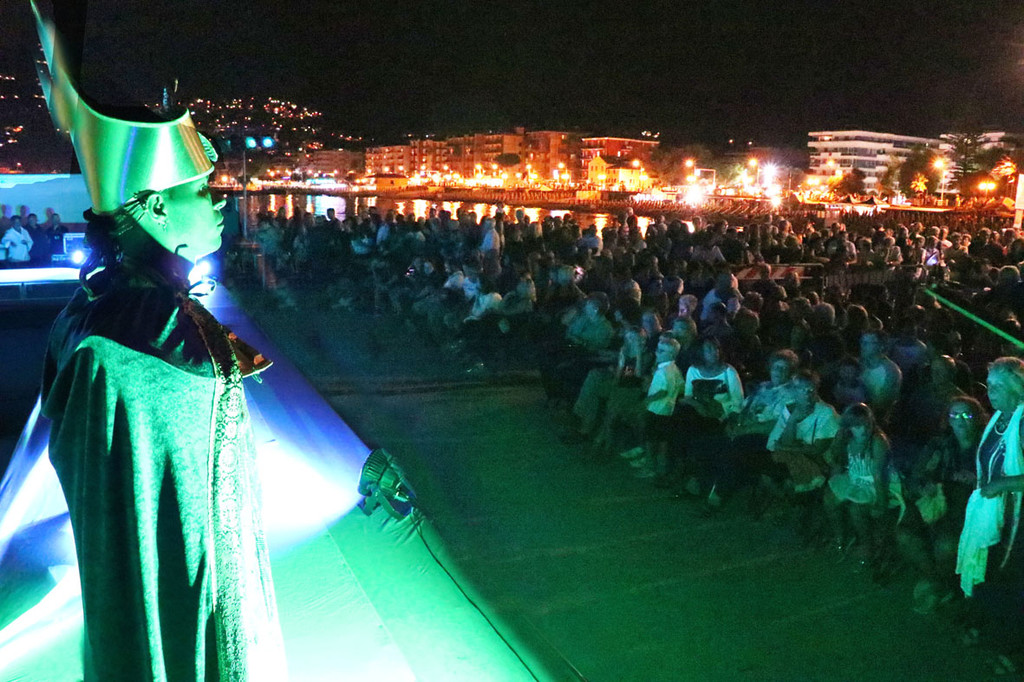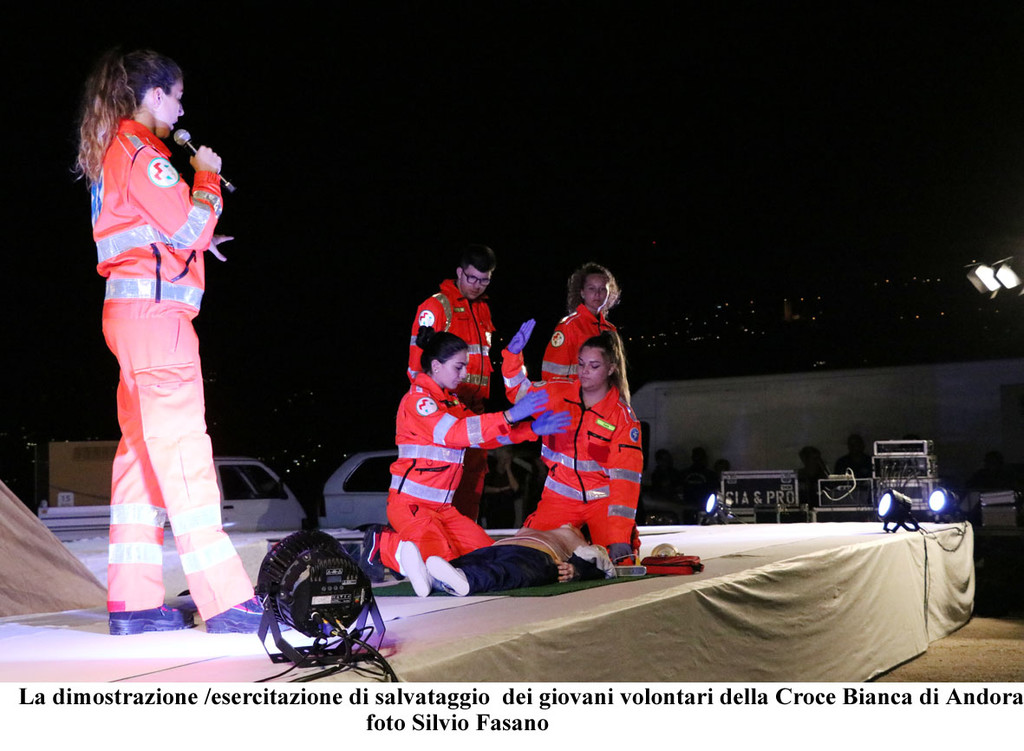 Un folto pubblico (e anche il sindaco Demichelis) si è radunato sul molo per assistere all'evento godibile per la posizione sul mare e coronato anche da fuochi d'artificio "silenziosi"Ospiti i giovani volontari della Croce Bianca di Andora che hanno voluto illustrare sul palco come si svolgeva un'operazione di salvataggio.