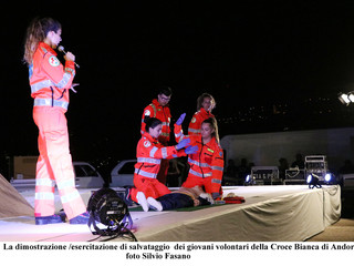 Un folto pubblico (e anche il sindaco Demichelis) si è radunato sul molo per assistere all'evento godibile per la posizione sul mare e coronato anche da fuochi d'artificio "silenziosi"Ospiti i giovani volontari della Croce Bianca di Andora che hanno voluto illustrare sul palco come si svolgeva un'operazione di salvataggio.