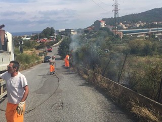 Sul posto sono intervenuti anche i dipendenti di EcoSavona e i Vigili del Fuoco