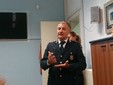 Prende la parola il comandante della Polizia Municipale, Gianluigi Soro: “Il primo invito a tutta la popolazione è quello a segnalare sempre qualsiasi movimento sospetto alle forze dell’ordine. Non preoccupatevi di capire se la segnalazione vi sembra rilevante o di poco conto. Questo lo stabiliranno le forze di pubblica sicurezza con le loro indagini, talvolta anche un piccolo indizio può rivelarsi prezioso”. Soro commenta che la circolare Minniti “ha condizionato la vita di tutti” e in qualche modo ha gravato anche sulle associazioni no profit e sugli eventi che organizzavano, perché “la sicurezza ha un costo”. Ma anche Soro, come il sindaco, sottolinea l’importanza del lavoro collettivo e sinergico fatto: “Abbiamo coinvolto il COC, il Centro Operativo Comunale, e la Protezione Civile, come avviene per la gestione delle emergenze e delle catastrofi naturali”. Soro ricorda inoltre che il 20 febbraio 2017 è stato varato il primo Decreto Legge nazionale che parla di “Modello di sicurezza integrato”, dove “integrato” indica proprio la piena collaborazione tra le forze dell’ordine, il Volontariato, i singoli cittadini.