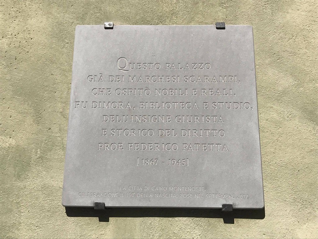 Un riconoscimento alquanto solenne. Nella giornata di ieri, il sindaco di Cairo Montenotte Paolo Lambertini ha scoperto una targa in ricordo di Federico Patetta. La cerimonia rientra nell'ambito del 150° anniversario della nascita del giurista e accademico cairese.