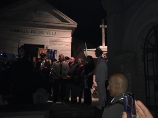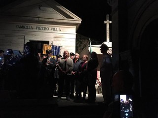 I più piccoli si affacciano incuriositi di fronte alla tomba dell'ex Presidente nativo di Stella e i genitori raccontano le vicende di un grande uomo che ha fatto la storia italiana, gli anziani commossi tendono i vessilli in segno di saluto e rispetto.