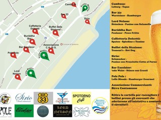 Spiega Massimiliano Semenza, presidente dell’Associazione Commercianti di Spotorno: “Abbiamo realizzato una brochure da distribuire alla clientela con una cartina che segnala i vari punti musicali e i bar che hanno aderito. In questo pieghevole è presente anche una raccolta bollini: chi consuma una birra può applicare un bollino, dopodiché, quando si arriva a cinque o a nove bollini ci si può recare allo stand dell’Associazione Commercianti e Artigiani di Spotorno in piazza e si riceve in omaggio una birra piccola (con 5 punti) o grande (con 9 punti)”.