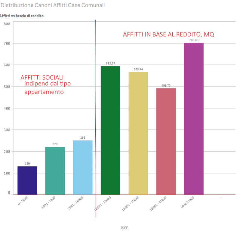 "Sui canoni di affitto proposto abbiamo fatto un intenso lavoro di squadra che ha dimostrato senza ombra di dubbio che il metodo proposto andava rivisto. Infatti al di sopra delle fasce sociali che riguardano gli ISEE inferiori a 10.000€ per cui gli affitti sono calmierati in tre fasce da 130, 220 e 250€ per tutte le altre fasce il metodo proposto produceva sempre lo stesso risultato e si era arrivati alla assurdità di chiedere un canone di 600€ per cittadini con ISEE compreso fra 10.000€ e 12.000€ e 700€ per un nucleo con più di 32.000€ di ISEE".