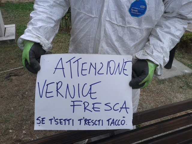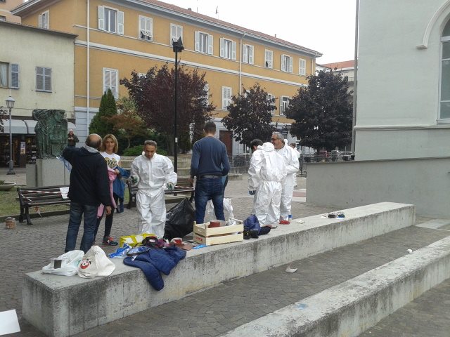 L'amministrazione comunale di Cairo Montenotte vernicia le panchine di piazza della Vittoria. Questa mattina in prima persona, il sindaco Paolo Lambertini e i membri della sua giunta, armati di pennello e tuta, si sono ritrovati nella piazza principale della cittadina valbormidese per rimettere a nuovo le panchine.