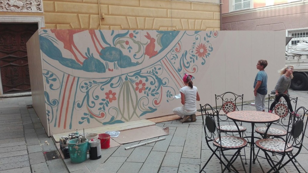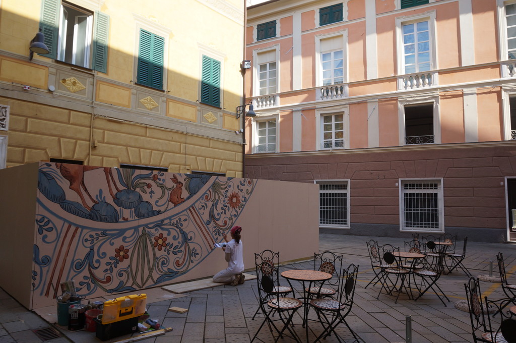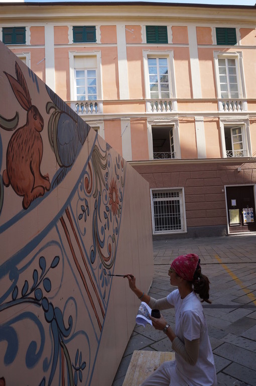 Da alcuni giorni il restauro ha ripreso il suo corso: un’opera speciale sta prendendo vita sui pannelli allestiti davanti al Palazzo in occasione del cantiere. Le restauratrici dell’impresa finalese Formento in queste ore stanno regalando alla città uno spettacolare dipinto ispirato a un’opera del Museo della Ceramica. “Dipingiamo i motivi di un bellissimo piatto in ceramica conservato nella pinacoteca”, spiegano, “per annunciare la ripresa dei lavori al territorio, che dimostra da secoli un legame speciale con l’arte e la produzione della ceramica”. Sarà possibile ammirare dal vivo le restauratrici di Formento durante il completamento di quest’opera passando in via Aonzo nella giornata di domani mercoledì 4 ottobre.