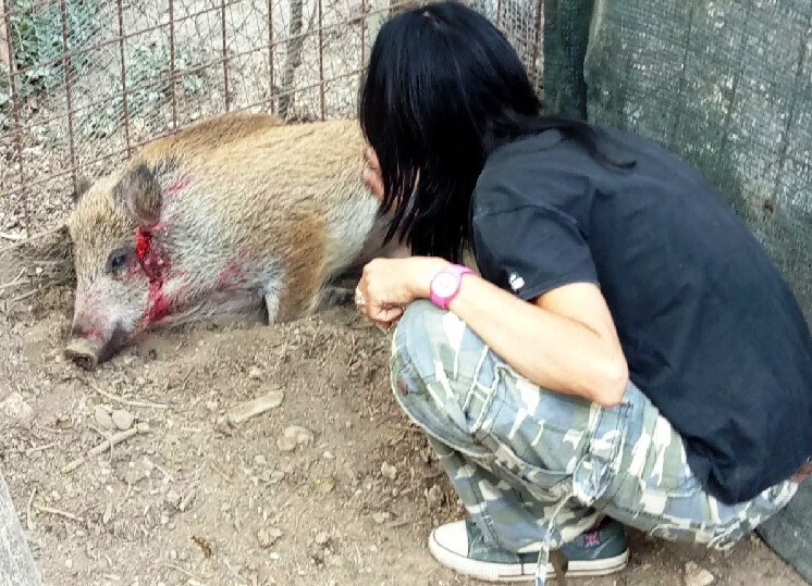 Una giovane cinghialina, ferita al muso forse da una fucilata (la caccia al cinghiale si è aperta da pochi giorni) si è “autoricoverata” nel rifugio della Protezione Animali di Cadibona.