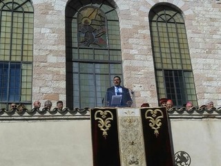 Come sempre in queste occasioni ci si prepara all’emozione che si proverà e si porta un discorso scritto e cesellato con i collaboratori, ma oggi vedo questo panorama e dopo aver assistito alle celebrazioni di ieri, credo sia meglio lasciare spazio a quanto provato in queste ore: il discorso rimarrà agli atti dei nostri amici frati, non alla storia, che qui è molto più importante.