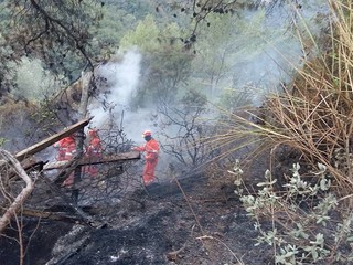 Incendio boschivo a Stellanello: intervento dell'Aib dell'Unione dei Comuni di Val Merula e Montarosio per spegnere i nuovi focolai
