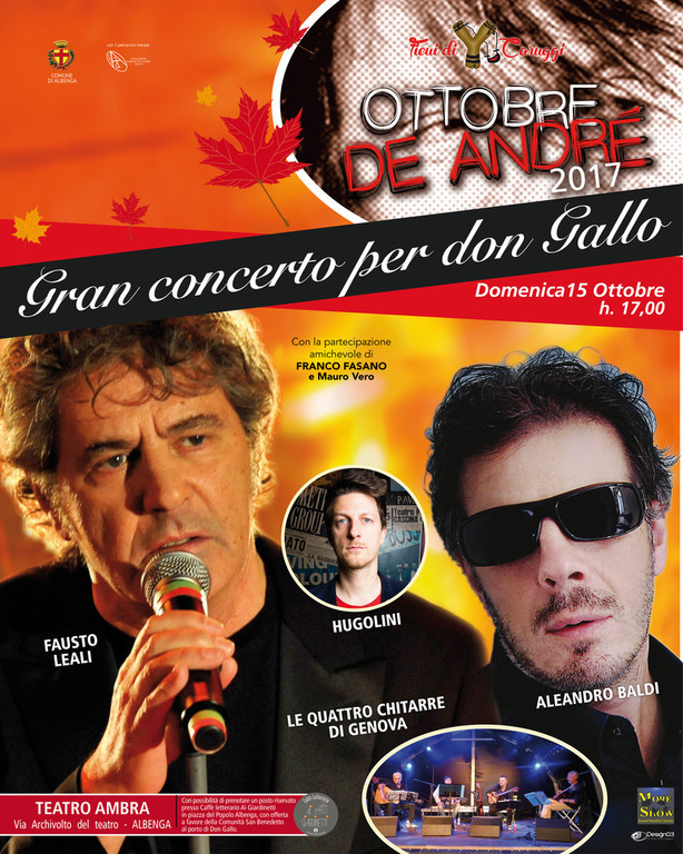 Un palco davvero importante domenica 15 al teatro Ambra di Albenga per "Ottobre De Andrè" la manifestazione ideata dai Fieui di caruggi e organizzata con la collaborazione dell’Amministrazione comunale.