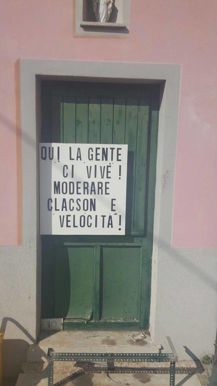 A Stella San Giovanni, in località Rovieto inferiore un privato cittadino stufo del continuo suono del clacson e dell’alta velocità con cui le auto sfrecciano nella zona ha deciso di appendere sul portone un cartello che recita: “ Qui la gente ci vive! Moderare clacson e velocità”.