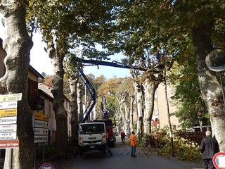 Potature delle piante all'interno del Comune di Mallare. I lavori affidati alla ditta Righello, si sono concentrati nella giornata di oggi in viale Luigi Corsi. Domani sarà la volta delle piante situate in piazza Oderico del Carretto e dei giardini pubblici.