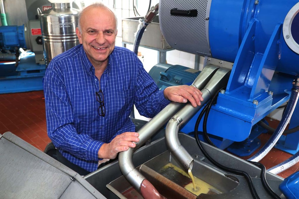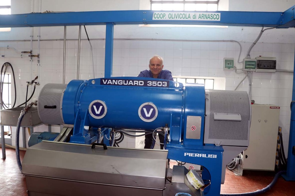La macchina, di ultima generazione, consente il risparmio del 20% di acqua con conseguente risparmio energetico e di scarto di lavorazione migliorando le qualità organolettiche dell'olio e la riduzione nelle emissioni sonore e vibrazioni.