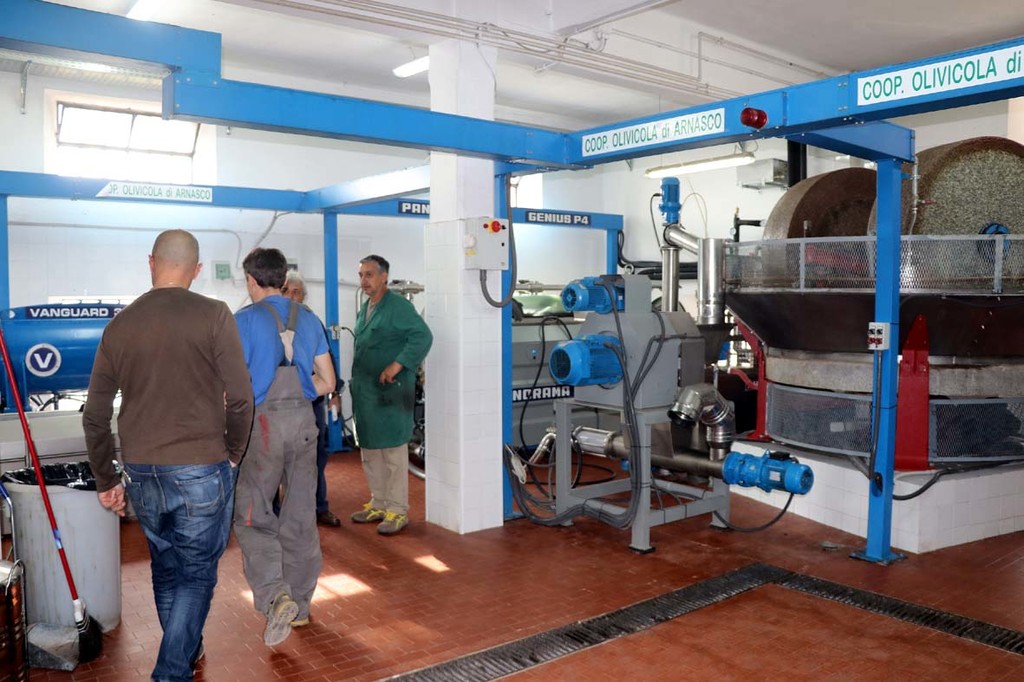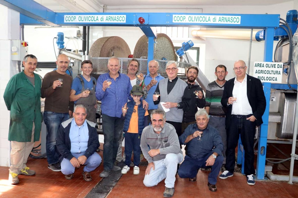 Il presidente della cooperativa luciano Gallizia, il suo vice Giovanni Piccinno e lo staff del frantoio hanno invitato il sindaco Alfedino Gallizia e il nuovo parroco don Italo Arrigoni a brindare per l'arrivo della nuova macchina.